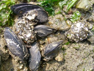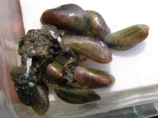 【右】ムラサキイガイ(外来)フランス料理のムールガイはこれ