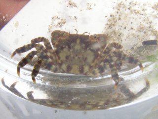 イソガニ=みどり、ムラサキ色のきれいなカニ