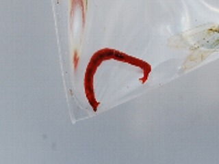 【右】あかむし(ユスリカの幼虫)