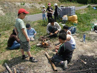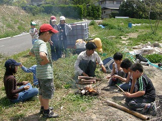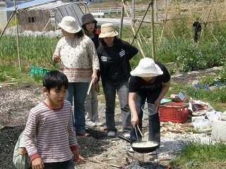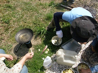 昼は野草のテンプラ、おひたし、焼タケノコを作って旬の味覚を楽しみました。(記・降幡)