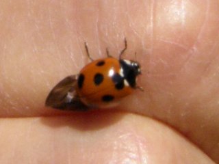 【左】野菜が雑草が同居している畑 【右】アブラムシを食べるテントウムシ