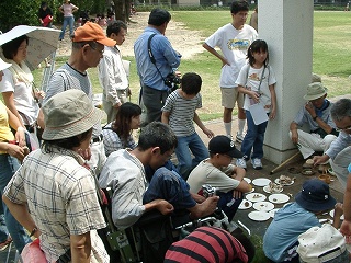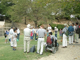 記録更新の真夏日となり、暑い日となりました。ツクツクボウシも盛んに鳴いていました。台風の時に雨が期待されましたが、風だけいただき、水気は余りいただけませんでした。そんな乾燥した中でのキノコ観察会になりました。こちらは宣伝不足で心配したが、グリーンマップとエコクラブの皆さんにたくさん来ていただきました。他に、HPの行事予定を見ていただき来て頂いた方も何人か見えました。たくさんの人に集まっていただき楽しい観察会が出来た。ちなみに、プロ野球もこの日は、スト後の初日で大変にぎわったそうです。