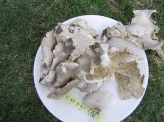 ヒラタケ、ツブカラカサタケ、イタチタケ、オオワライタケ、キクバナイグチ、オオミノクロアワタケ、シロハツの仲間、クサハツ、カワリハツ、ヒイロタケ、ツヤウチワタケ、ホウロクタケ、クジラタケ、コフキサルノコシカケ、カワラタケ、ホコリタケなど。