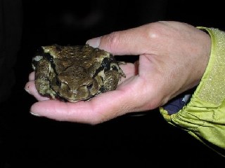 【右】ヒキガエルが散歩に出てきました。知多地方のヒキガエルは激減しています。