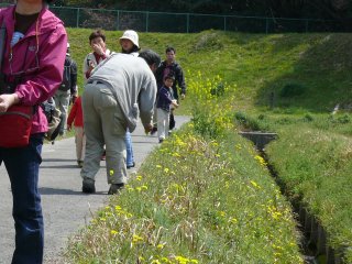 ・11:15〜田んぼのレンゲを観察しながら、帰路につく