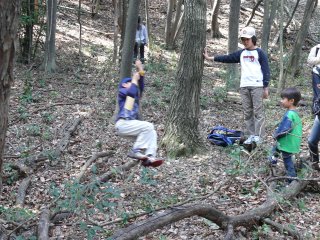 【左】ターザンロープだよ。(フジヅルかアケビヅル 子ども限定 体重40KGまではOKでした。)