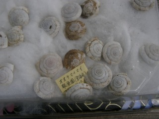 【左】出発前の説明  【右】標本のオオケマイマイ