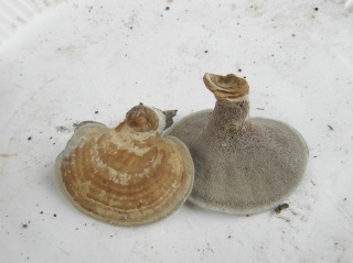 【左】アミスギタケ(食は不向き、だしは取れます)