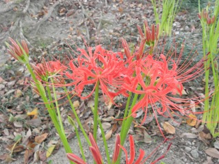 【左】キツネノロウソク 【右】彼岸より早く、ヒガンバナ満開