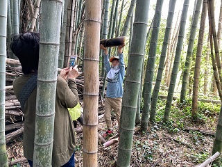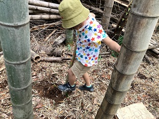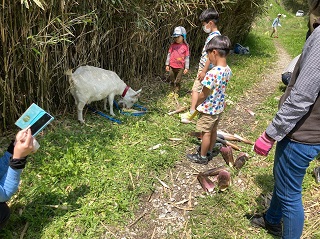 昨年より2週間ほど早い開催で、孟宗竹のタケノコがたくさん出ていました。パチンコ遊びが無い分、タケノコ掘りで楽しみました。竹林に入る前と後にヤギと遊びました。
