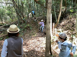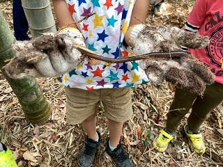 【左】ターザンロープやブランコで遊ぶ  【中】キクラゲの仲間  【右】ヤギさんはタケノコ大好き