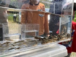 【左・中】きれいな水でミニ水族館出来あがり 【右】スミウキゴリ