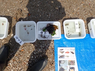 ◎ 魚 :アナゴの幼魚、アカエイ(浜辺に打ち上げられており、危険な生物の良い説明材料となりました)・ヒメハゼ・ヨウジウオ・ウナギ・ボラの幼魚・セイゴ・シーバス