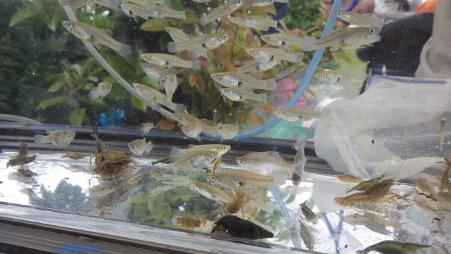 (魚類) ウナギ(3年生?)、メダカ、タモロコ、タイリクバラタナゴ、オイカワの幼魚、カダヤシ、ナマズ(目視)