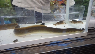【左】ウナギも捕れました    【右】ハグロトンボのヤゴたち