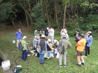 駐車場でキノコについての話と注意事項を聞いて林の中へ出発、11時ごろまでキノコ探しをしました。途中に2か所スズメバチの巣、あるいは樹液にたくさん集まっている箇所があり、気づかずに近づくと危険だと感じた。