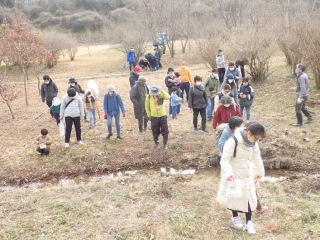 昨年度のこの観察会はコロナのため中止。今回の観察会は環境課主催ではないので 募集人数の締め切りもないためかたくさんの参加者が集まった。ボーイスカウトや炭 焼きの会との行事と重なり駐車場はいっぱいになった。
