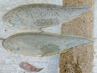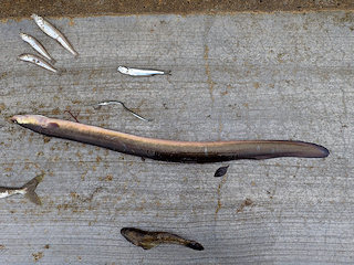 【左】大きなコチ 【右】絶滅危惧種のウナギも