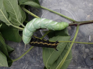 【左】羽化直後のセミの天ぷらをこわごわ食す 【中】小鳥の巣 【右】スズメガの幼虫が二種類