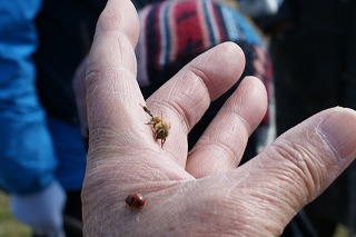 【左】セイヨウミツバチ(冬越し中) とナナホシテントウムシ 【中】エグリゴミムシダマシ 【右】不明