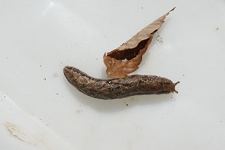 【左】ヒゲジロハサミムシ 【中】オオナメクジ(ヤマナメクジ) 【右】マクラギヤスデ