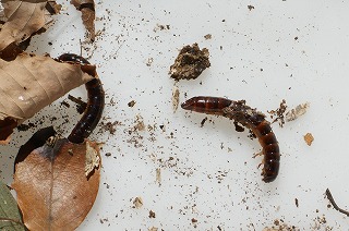 【左】コメツキムシ(幼虫) 【中】コクワガタ(幼虫) 【右】キマワリ(幼虫)