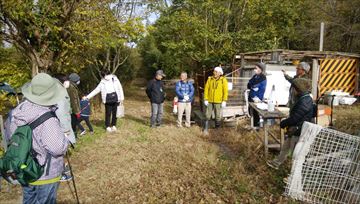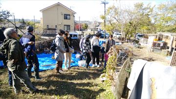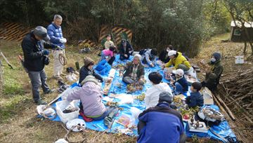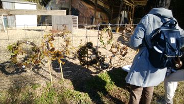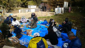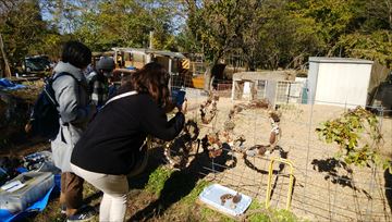 風もなく穏やかな天気で、工作日和でした。あいさつの後、ヤギに餌やりがてらリースの弦を採りに行き、時間を使いすぎて竹林に入ることはできませんでした。