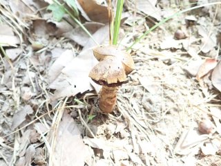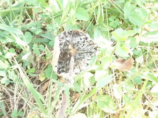 お天気続きで地面が乾いているため、キノコの量が少なかった。キノコ探しが始まると皆一生懸命。子供の目線は低いので、思いがけないところでのキノコまで探し出し、感心するばかりである。参加者の中に週に2〜3回梅の館を散歩している方がいて、地面が乾燥していてもキノコを見かけた場所を覚えていて教えて下さりありがたかった。観察会に参加する親御さんは自然に対する関心が強い方ばかりなので、子供達も日頃からその影響を受けていて、鋭い観察力を持っている。