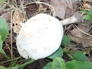 【左】キノコのお話と注意など     【右】オオシロカラカサタケ