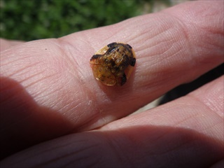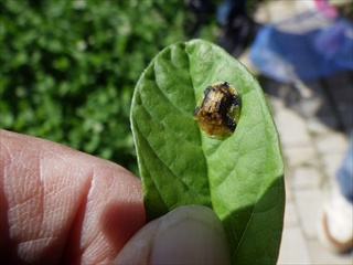 ただし、今回、特筆すべきことが一つあった。それは、ここの観察会で初めて見つけた昆虫がいた。"ヨツモンカメノコハムシ (ちょっと?)"。今回が初めてと言うのもおかしいが事実。昆虫好きな子どもが最初に見つけ、よく見たら、他に4匹も、葉の上に見つけた。昆虫好きな子どもにはかなわない。