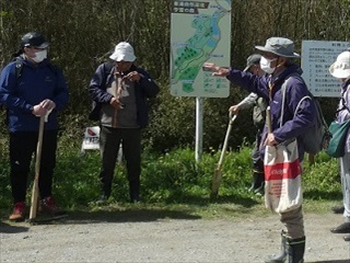 昨日の雨の後、風が吹いて晴れて黄砂の影響もなく、新緑の中を気持ちよく歩きました。集合場所からぞろぞろ歩きます。入り口付近に幼いナナフシモドキがいました。 タンポポはセイヨウタンポポがずいぶんと減りました。ハルジオンにベニシジミが吸蜜中でした。 池の縁には、花の穂をつけたコナラ、フジの花、アケビの花が咲いていて感動的でした。 多目的広場は、草原で、ツチナゴ、ナナホシテントウ、を追いかけました。