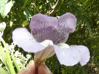 ワラビ取りは、ささやぶの中を去年の枯れた葉を目安に探しました。最初の1本が見つけられると、目がなれて見つけられるようになります。道に大きな紫の花が落ちていました。キリの花です。見上げるとたくさんのキリの花が咲いていました。