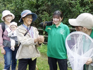 【左】担当指導員の話。テーマなど 【右】ここでヒバカリ、採った