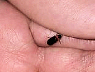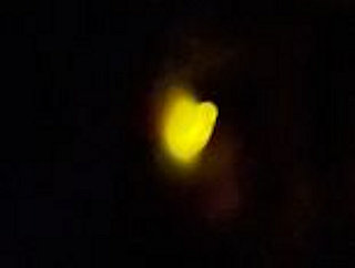 【左】捕まえたヒメボタル 【右】黄色く光っています