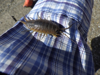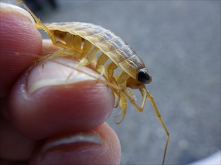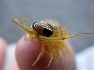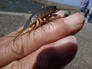 待つのはヒマなので、人懐っこいフナムシを撮る(指に止まったままで動かない)。