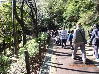 はじめに管理協会の方から公園の諸注意。次に観察会担当者からスズメバチやマムシについての注意があり、続いて本日の本題であるキノコについてつくりや採集の仕方についての説明があった。キノコを拡大した図を利用して説明するので、分かりやすく、参加者が熱心に聞き入った。