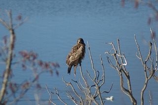 主題のカワウについてはその生活環なども詳しく図解してガイドの手助けとしました。交流広場からダム堤、親水広場まで往復する間、沢山のカワウ、雑木林の小鳥たち、ダム湖のマガモ類とミコアイサ群、空を舞うワシ・タカの仲間、チョウゲンボウのホバリングなど鳥観察と話題が尽きませんでした。
