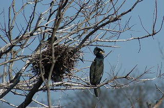 【左】カワウの営巣   【中】   【右】カワウの子育て