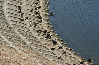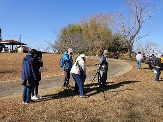 【左】親水広場からの観察   【中】同左   【右】交流広場で、今日観た鳥類の「鳥あわせ」