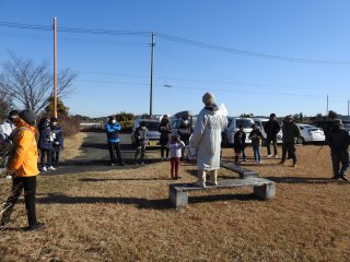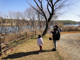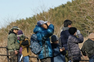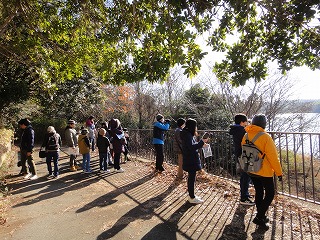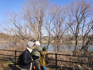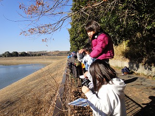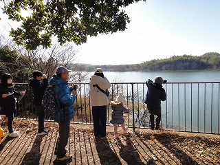 広報とこなめ1月号にてお知らせ、1月9日に下見。広報の効あって市内から沢山の家族が集まりました。前山ダム公園を訪れたのも初めて、鳥観察も初体験という方々が目立ちました。公園とダムに集まる冬鳥を紹介するラミネート図鑑を用意し各家族に提供しました。