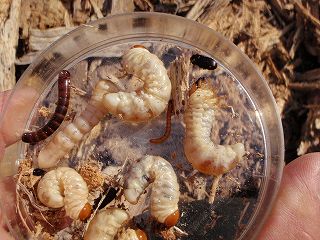 【左】キマワリやコクワガタなどの幼虫  【右】コガタスズメバチ…冬眠中を起こして…