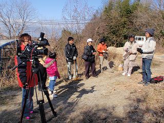晴れてはいましたが冷たい風が吹く冬の天気でした。サリューの駐車場から東に見える林の中が今回の観察地です。地元ケーブルテレビのCACさんも取材に来ていただいていましたが一般参加者が少なく少し拍子抜けの感じは否めない。
