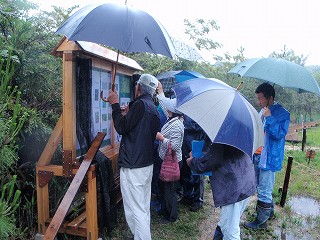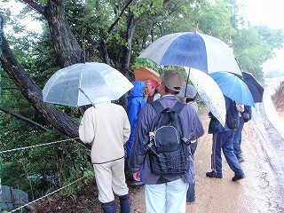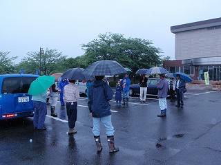 雨なので、ふれあいの森から歩きたい人は歩き、現地まで車で移動する人もいました。