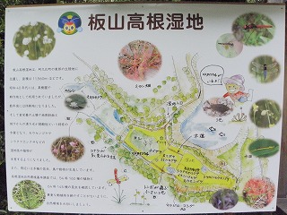 【左】板山湿地の解説版を見てお話を聞きました。     【右】湿地の遊歩道を進みました。