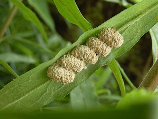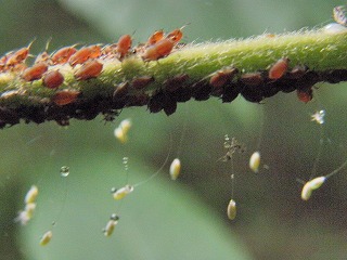 【左】ユミアシゴミムシダマシ         【中】24 狩人バチの巣?         【右】クサカゲロウの卵とアブラムシ