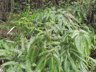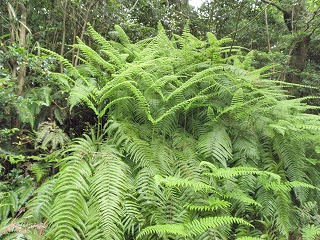 【左】ウラジロの新芽          【中】コシダの新芽           【右】クロコブタケ