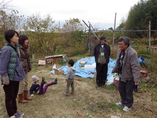 【左】例年より寒いけど頑張りましょう… 【右】草の上にブルーシートをしいて始めました