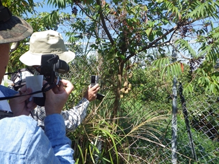 湿地内ではシラタマホシクサの花も年々早まり最盛期はすでに過ぎ光沢のある白から少し濁っているが今年も一面に広がり迎えてくれた。湿地内も天候の影響を受け、湿りけは少ないが最盛期のヒヨドリバナ、サワヒヨドリに蜜を求めてハナアブ・ハナバチなどが音を立てて飛び交っていました。また色づいているウメモドキ、コムラサキシキブの実がひときわ目立つ。観察に熱中し予定時間を大幅にオバーしましたが楽しい観察会でした。(記・宮内)