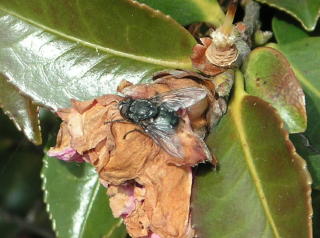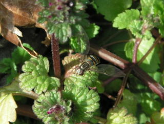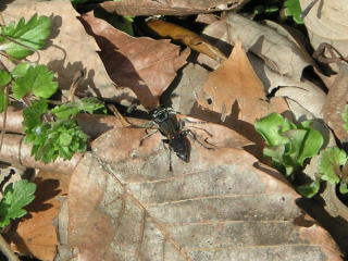【左】オオクロバエ 【中】コガシラナガゴミムシ(側溝の落ち葉の下にいました) 【右】ヒメバチ類?