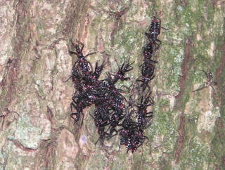 【左】クロヒラタアブ? 【中】ホソヒラタアブ 【右】ヨコヅナサシガメ幼虫(集団でじっとしていました)